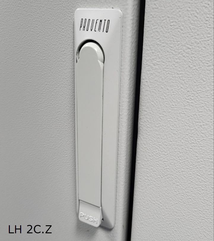Ручка поворотная с кнопкой, обеспечивает бесключевой быстрый доступ в шкаф.