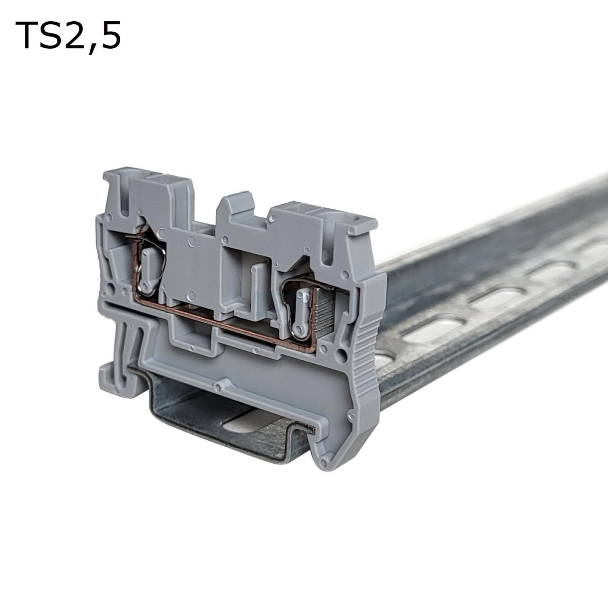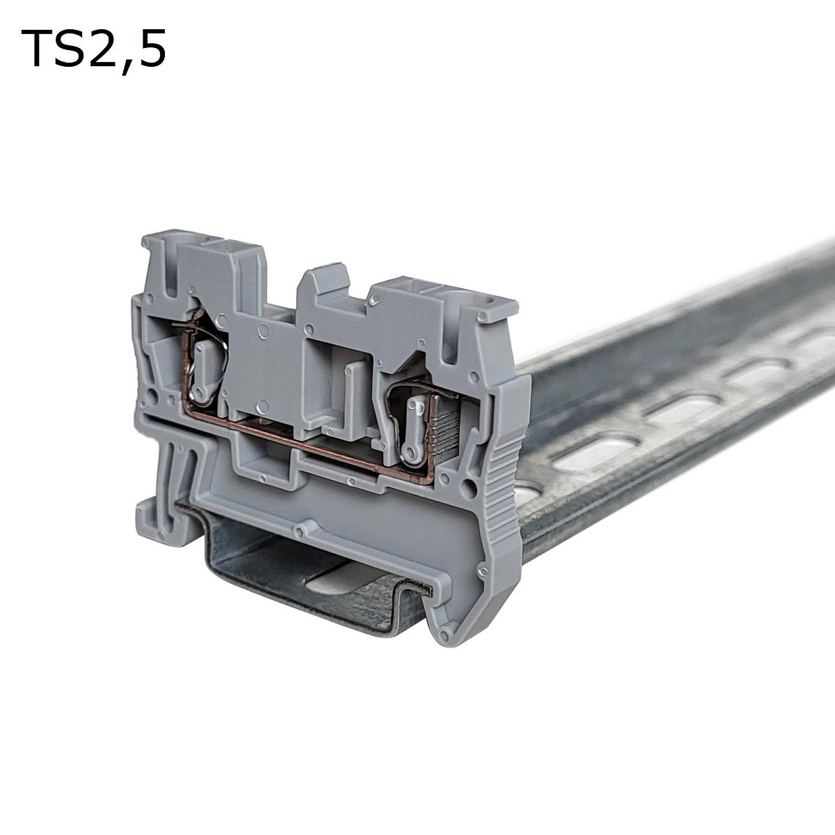 Клемма пружинная проходная 2 контакта 2,5 мм2, серая