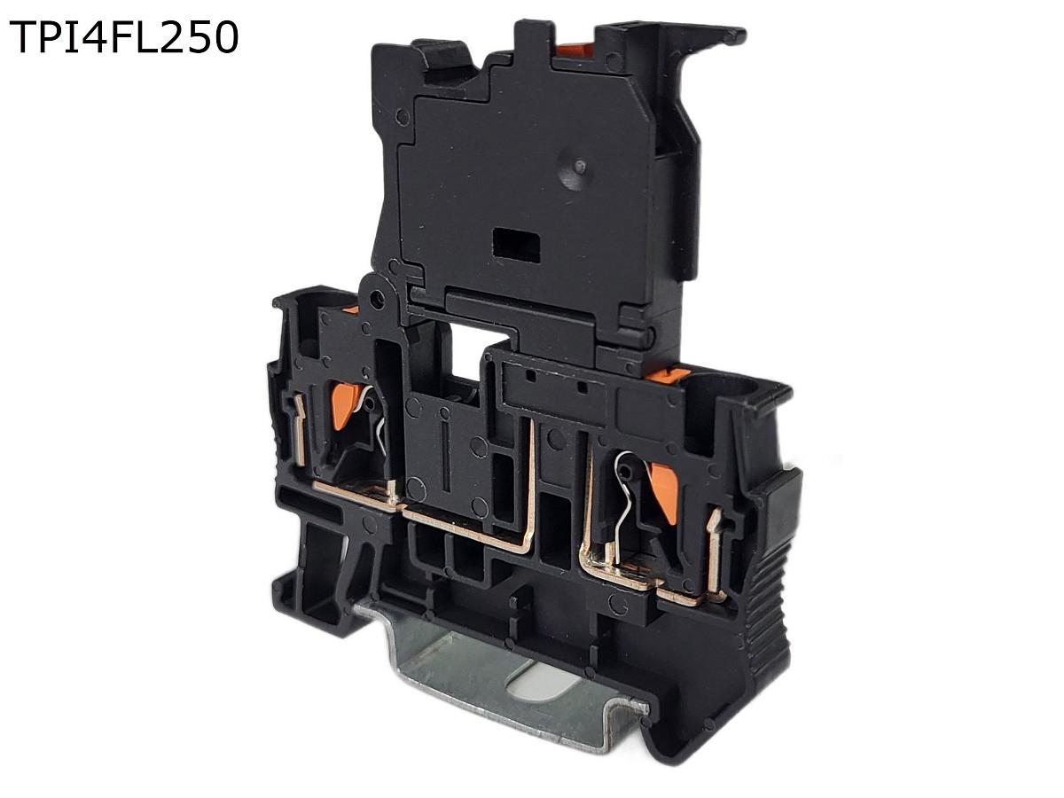 Клемма push-in с держателем предохранителя и индикатором 250В 2 контакта 4 мм2, черная