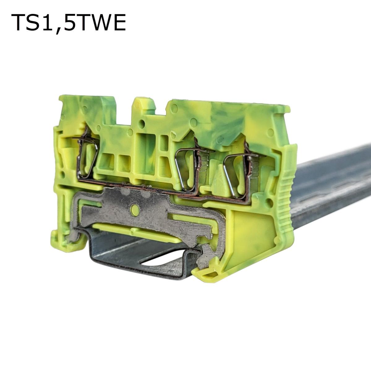 Клемма пружинная проходная 3 контакта 1,5 мм2, заземляющая