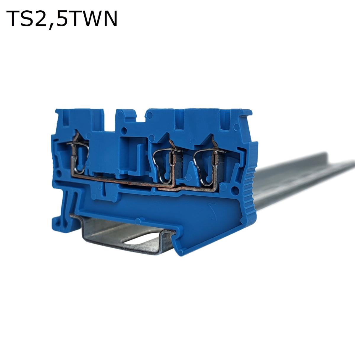 Клемма пружинная проходная 3 контакта 2,5 мм2, синяя