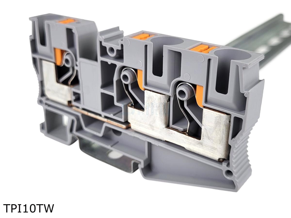 Клемма push-in проходная 3 контакта 10 мм2, серая