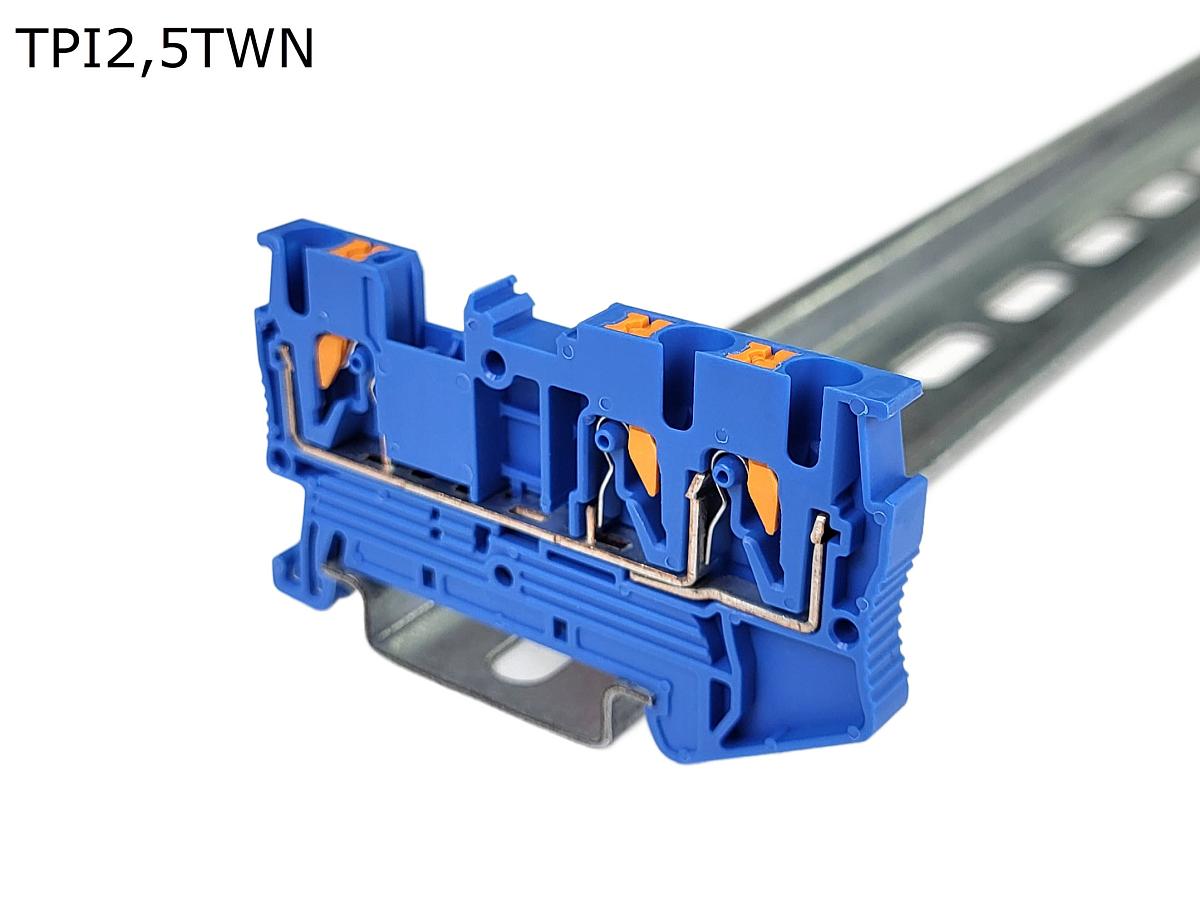 Клемма push-in проходная 3 контакта 2,5 мм2, синяя