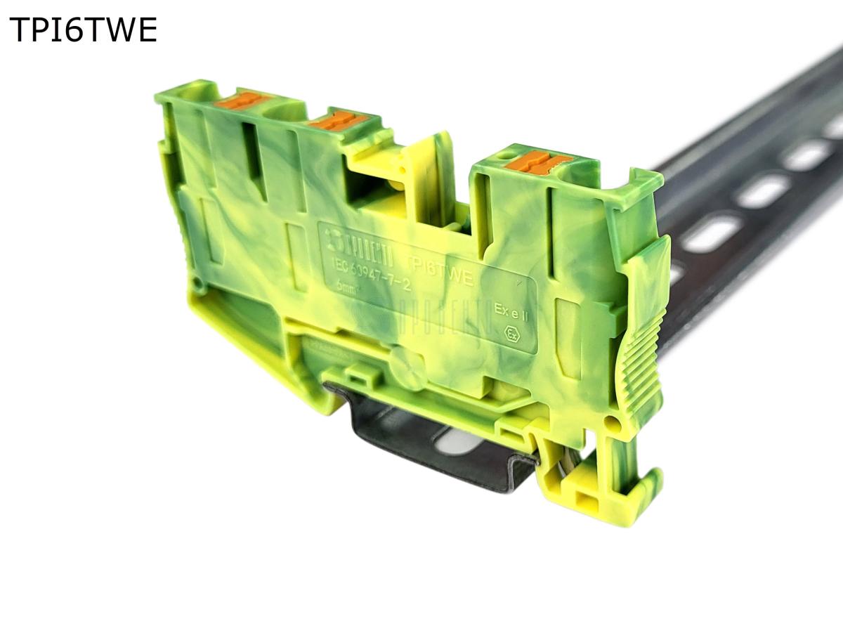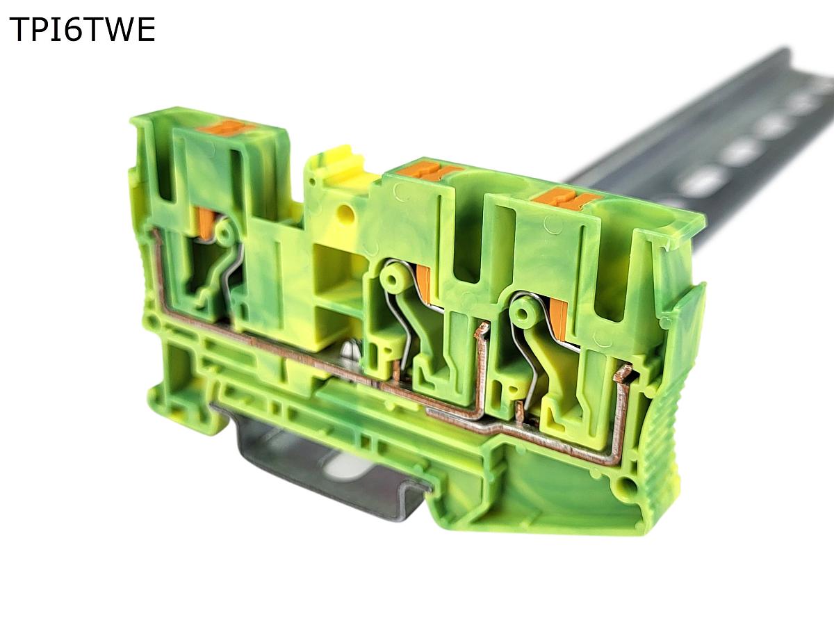Клемма push-in проходная 3 контакта 6 мм2, заземляющая