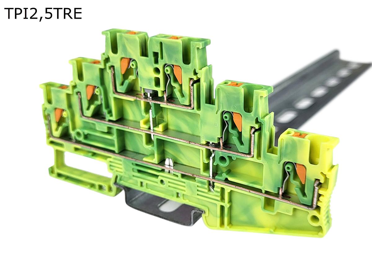 Клемма push-in трехуровневая 6 контакта, 2,5 мм2, заземляюшая