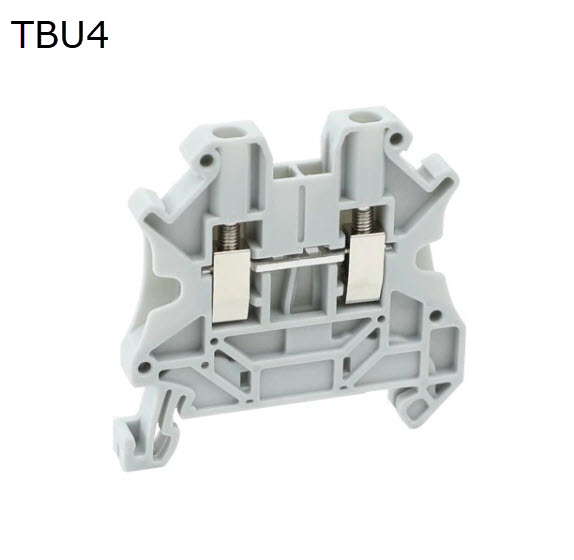Клемма винтовая с двумя рядами шунтирования проходная 2 контакта 4 мм2, серая